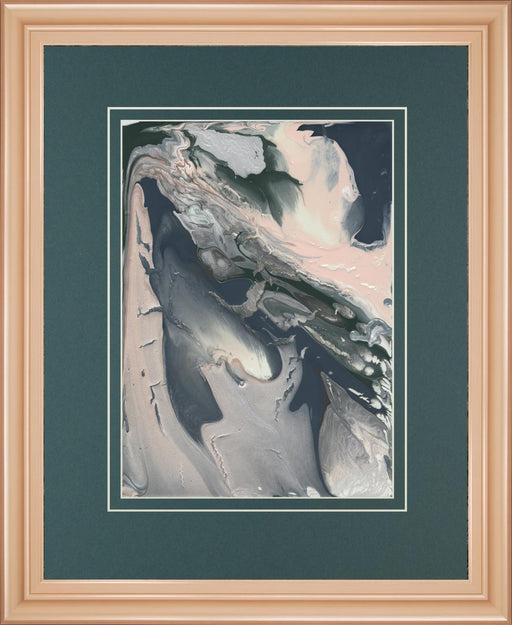 Classy LivingThis serene abstract piece invites calm with its harmonious blend of muted pinks, soft greens, and deep navy strokes. Encased in a natural wood fra...