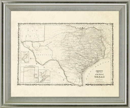 Classy LivingStep back in time with this exquisite vintage map of Texas, framed in a sleek silver border that enhances its timeless appeal. The detailed cartogr...