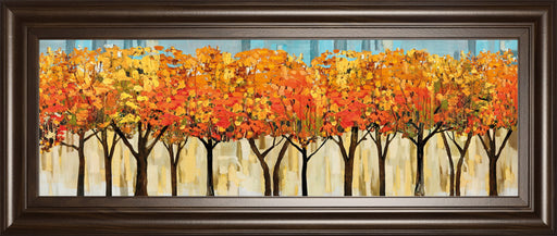 Classy LivingExperience the vibrant spirit of fall with this captivating artwork that showcases a row of trees adorned in fiery orange and golden yellow leaves....