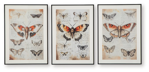 Signature Design by Ashley®Grace your walls with vintage charm. This exquisite wall art set features intricate butterfly prints floating over a backdrop of antique script, cr...