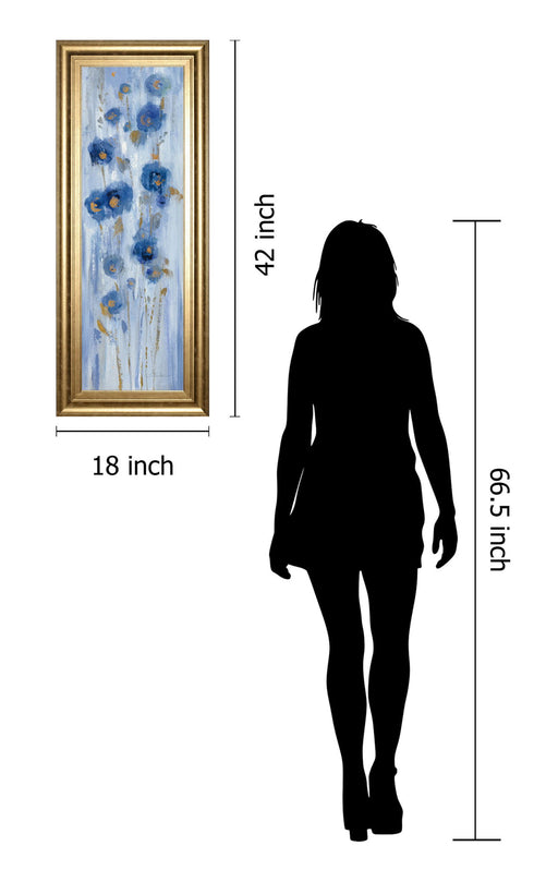 Classy LivingSeaside Blooms invites you into a tranquil coastal garden where delicate blue and gold flowers sway gently in a soothing breeze. This vertical oil ...
