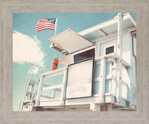 Classy LivingStep into a peaceful summer day with this captivating lifeguard stand artwork, where soft pastel blues and warm natural wood tones create a serene ...