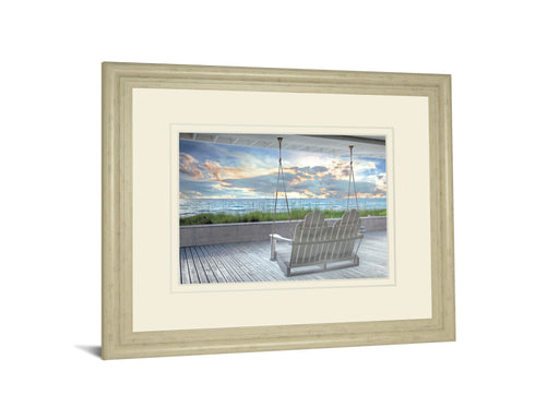 Classy LivingStep into a peaceful coastal escape with this beautifully framed wall art featuring a charming porch swing overlooking the ocean. The soft tan fram...