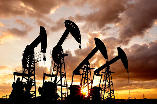 Classy Living"Drill Baby Drill" captures the striking silhouette of oil pump jacks set against a dramatic sunset sky. Printed on durable tempered glass, this pi...
