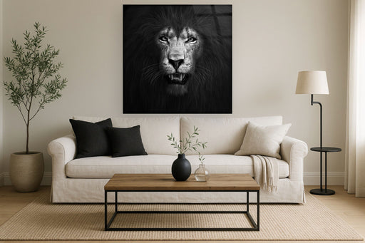 Classy LivingCapture the majestic intensity of the wild with "B&W Lion," a striking piece of contemporary wall art crafted on tempered glass. This graphic a...