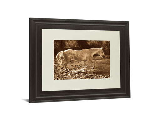 Classy LivingStep into a tranquil moment where nature and grace converge in this captivating sepia-toned photograph. A horse gently crosses a shallow stream, it...