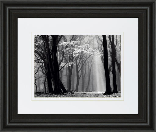Classy LivingStep into the quiet embrace of a misty forest with this evocative black-and-white photographic art piece. The soft light filtering through bare tre...