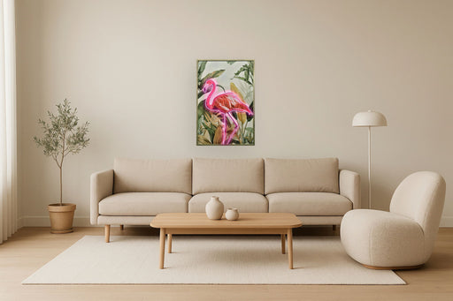 Classy LivingIlluminate your space with the vibrant charm of the Neon Flamingo Tropical Artwork. This hand-painted mixed media piece combines traditional canvas...
