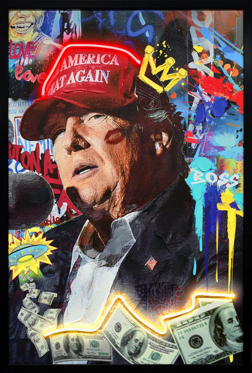 Classy LivingThis captivating "Neon Portrait with Money" is a bold contemporary mixed media wall art piece that combines hand-painted canvas with vibrant neon L...