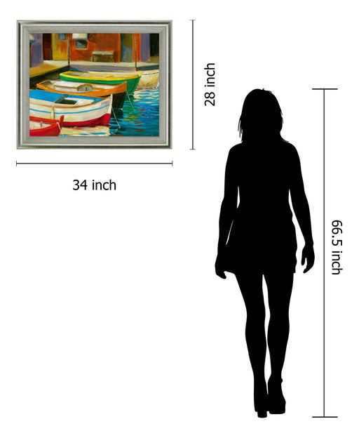 Classy LivingStep into a lively harbor scene with this vibrant depiction of colorful boats gently resting along a quiet canal. The artwork’s rich palette of red...