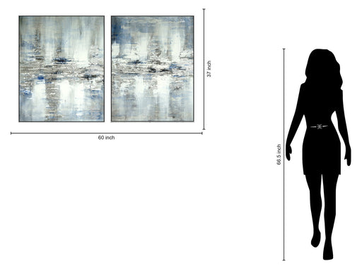 Classy LivingThe "Horizon Mist Blue Textured Diptych" is a stunning hand-painted canvas set that brings serene abstraction into your space. Featuring a harmonio...