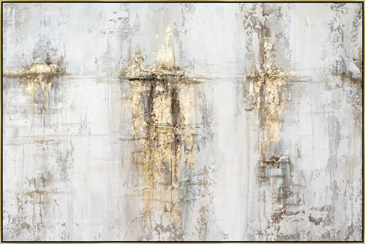 Classy LivingHand-embellished abstract canvas with rich gold leaf and earthy tones, framed in a chic gold floating frame—perfect for modern décor.Product Featur...