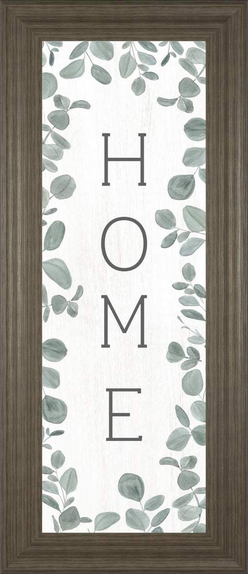 Classy LivingInvite a peaceful, botanical charm into your home with this beautifully framed wall art featuring soft eucalyptus leaves encircling the word "HOME....