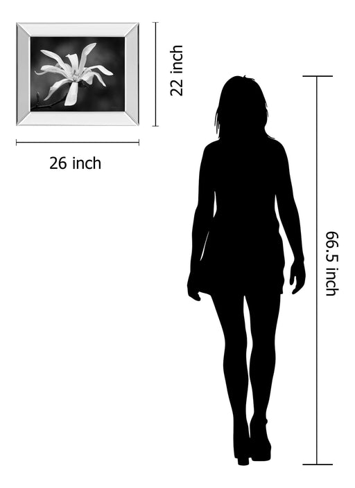 Classy LivingExperience the serene elegance of a magnolia blossom captured in timeless black and white. This striking photograph, set within a sleek mirrored fr...