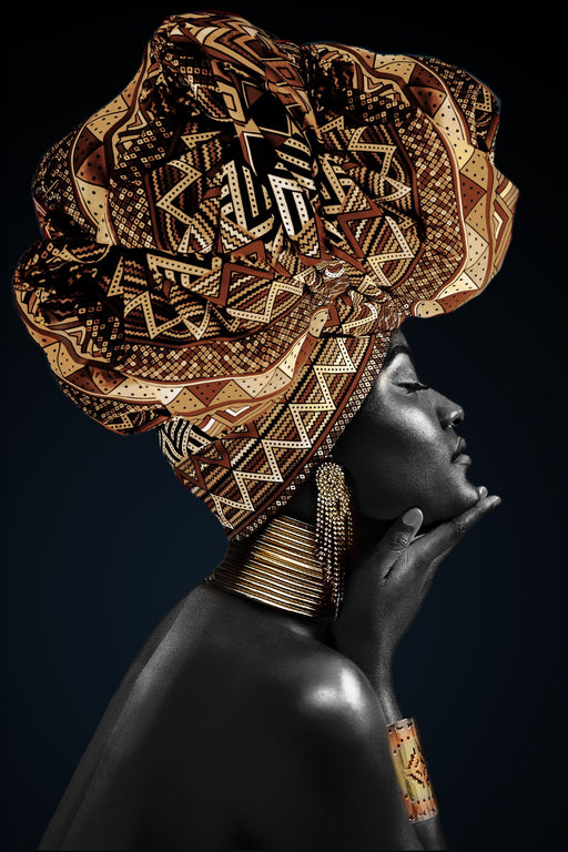 Classy LivingThis striking hand-painted gloss canvas titled “Gold Headdress Portrait on Black” captures a powerful profile of a woman adorned with an intricatel...