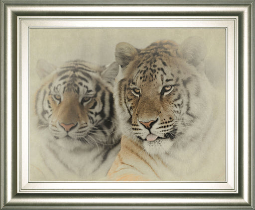 Classy LivingStep into a tranquil world where two majestic tigers emerge from a soft, ethereal haze. This traditional-style graphic art piece captures their ser...