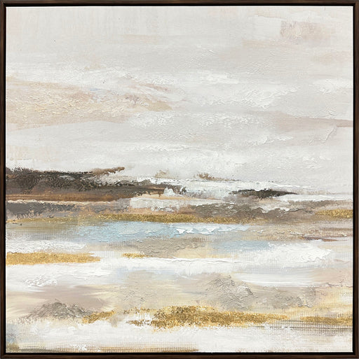 Original price $149.99 - Original price $149.99Original price$149.99$149.99 - $149.99Current price $149.99"Tranquil Horizon I" Hand-Embellished Canvas In Frame - Cream / Light Blue / Brown