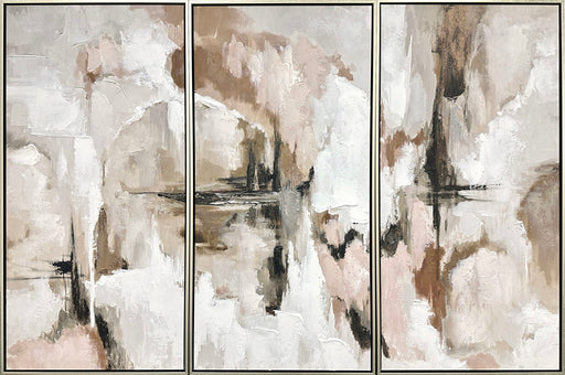 Classy LivingEvoke a sense of tranquility and elegance with 'Ethereal Reflections,' a hand-embellished oil triptych. This abstract piece captures the delicate i...
