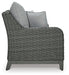 Add a distinguished touch of gray to your outdoor living space with this loveseat. It's made with resin wicker over an aluminum frame for a relaxed look that provides seasons of enjoyment. Rest assured, the thick seat and back cushions are wrapped in Nuvella® high-performance fabric that’s fade-resistant, stain-resistant and a breeze to clean.