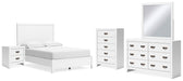 Details B427B4: Includes full panel headboard, footboard, rails and slats, Made with hardwood solids, okoume veneer and MDF substrates, White finish, Foundation/box spring required, sold separately, Mattress available, sold separately, Assembly required, B427B1: Includes dresser and mirror, Made with hardwood solids, okoume veneer and MDF substrates, White finish, 6 drawers with dovetail construction and metal center guides, Hardware with dark finish, Drawer interiors are lined with a wood grain laminate for a clean, finished look, Mirror attaches to back of dresser, B427-46: Made with hardwood solids, okoume veneer and MDF substrates, White finish, 5 drawers with dovetail construction and metal center guides, Hardware with dark finish, Drawer interiors are lined with a wood grain laminate for a clean, finished look, B427-92: Made with hardwood solids, okoume veneer and MDF substrates, White finish, 2 drawers with dovetail construction and metal center guides, Hardware with dark finish, Drawer interiors are lined with a clean wood grain laminate for a clean, finished look,