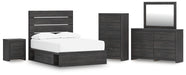 Hollivern Full Panel Bed with Storage with Mirrored Dresser, Chest and Nightstand