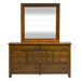 Staple your child’s room or guest space with a rustic American style with the Grandpa’s Cabin panel bed, dresser and mirror. Crafted of rubberwood solids and oak veneers, this kit features complete case dust proofing to protect your contents, French and English dovetail drawer construction, full extension and fully stained interior drawers, bluff-cut drawer fronts, wood and peg accents that offer a craftsman feel, and is accented with antique brass knob hardware. The panel bed offers a planked style on the headboard and footboard, a center support slat system and bolt on rails, ensuring reliability and longevity. The dresser offers three drawers and pairs well with the large picture frame mirror with a 1” bevel and includes bolt-on supports.