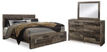 Derekson King Panel Bed with 2 Storage Drawers with Mirrored Dresser