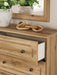 Country rustic. Vintage inspired. However you see it, you’re sure to be charmed by this bedroom package. Adorned with chic drawer knobs and a warm oak grain finish, it offers a relaxed mix of picturesque aesthetics. With an air of easygoing elegance, this set lets you drift away to a simpler time and place.