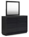 Details B768B4: Includes headboard, footboard and rails, Made with pine solids, veneers and engineered wood substrate, Textured black wood stain with waxy topcoat, Extra wide rails for a bench-like wrap around, Foundation/box spring required, sold separately, Mattress available, sold separately, Assembly required, B768B1: Includes dresser and mirror, Made with pine solids, veneers and engineered wood substrate, Textured black wood stain with waxy topcoat, Hardware-less design, 6 drawers with fully finished interiors, dovetail construction and ball-bearing side glides (top drawers felt lined), Mirror attaches to back of dresser, B768-46: Made with pine solids, veneers and engineered wood substrate, Textured black wood stain with waxy topcoat, Hardware-less design, 5 drawers with fully finished interiors, dovetail construction and ball-bearing side glides (top drawers with felt-lined bottoms), B768-92: Made with pine solids, veneers and engineered wood substrate, Textured black wood stain with waxy topcoat, Hardware-less design, 2 drawers with fully finished interiors, dovetail construction and ball-bearing side glides, 110V power supply with dual USB charging ports, Power cord included; UL Listed,