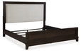 Neymorton King Upholstered Panel Bed with Mirrored Dresser and Nightstand