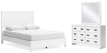 | Details | B427B6: Includes queen panel headboard, footboard, rails and slats, Made with hardwood solids, okoume veneer and MDF substrates, White finish, Foundation/box spring required, sold separately, Mattress available, sold separately, Assembly required, B427B1: Includes dresser and mirror, Made with hardwood solids, okoume veneer and MDF substrates, White finish, 6 drawers with dovetail construction and metal center guides, Hardware with dark finish, Drawer interiors are lined with a wood grain laminate for a clean, finished look, Mirror attaches to back of dresser, | |