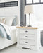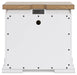 Details B844B2: Includes panel headboard, storage footboard, rails and roll slats, Footboard made with hardwood solids, MDF substrates and butcher block oak veneer, Headboard and rails made with hardwood solids and MDF substrates, White finish, Headboard with inset black metal barn sash, 2 drawers in footboard with fully finished interior, dovetail construction and ball-bearing side glides, Pulls with matte black finish, Bed does not require a foundation/box spring, Mattress available, sold separately, Assembly required, B844B1: Includes dresser and mirror, Made with hardwood solids, MDF substrates and butcher block oak veneer, Dresser with 2-tone finish (white finish; butcher block oak veneer with natural finish), Pulls with matte black finish, 10 spacious drawers with fully finished interiors (top drawers felt lined), dovetail construction and ball-bearing side glides , Drawers with inset picture fronts, Mirror attaches to back of dresser, B844-93: Made with hardwood solids, MDF substrates and butcher block oak veneer, 2-tone finish (white finish; butcher block oak veneer with natural finish), Pulls with matte black finish, 3 spacious drawers with fully finished interiors (top drawers felt lined), dovetail construction and ball-bearing side glides, 110V power supply with dual USB charging ports, Power cord included; UL Listed, Drawers with inset picture frame fronts,
