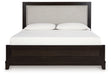 Neymorton Queen Upholstered Panel Bed with Mirrored Dresser