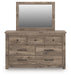 Rusticott Queen Poster Bed with Mirrored Dresser and Nightstand
