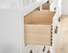 Details B427B2: Includes twin panel headboard, footboard, rails and slats, Made with hardwood solids, okoume veneer and MDF substrates, White finish, Foundation/box spring required, sold separately, Mattress available, sold separately, Assembly required, B427B1: Includes dresser and mirror, Made with hardwood solids, okoume veneer and MDF substrates, White finish, 6 drawers with dovetail construction and metal center guides, Hardware with dark finish, Drawer interiors are lined with a wood grain laminate for a clean, finished look, Mirror attaches to back of dresser, B427-46: Made with hardwood solids, okoume veneer and MDF substrates, White finish, 5 drawers with dovetail construction and metal center guides, Hardware with dark finish, Drawer interiors are lined with a wood grain laminate for a clean, finished look, B427-92: Made with hardwood solids, okoume veneer and MDF substrates, White finish, 2 drawers with dovetail construction and metal center guides, Hardware with dark finish, Drawer interiors are lined with a clean wood grain laminate for a clean, finished look,
