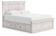 | Details | Includes panel headboard, panel footboard, under bed storage unit, platform rails and roll slats , Made with engineered wood (MDF/particleboard/plywood) and decorative laminate for the right balance of affordability and durability, Whitewash replicated worn through paint over replicated wood grain with authentic touch, Decorative laminate replicates natural or man-made material surfaces with consistent color, pattern and texture, Handles with dark bronze-tone finish, 2 smooth-gliding storage drawers, Bed does not require additional foundation/box spring; accommodates most zero clearance adjustable bases with the addition of a bunkie board , Mattress available, sold separately, Assembly required | |