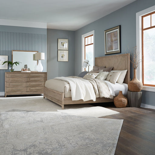 Liberty FurnitureMake a statement with the Belmar panel bed. Crafted with rubberwood solids and split heart oak veneers, the washed taupe and silver champagne finis...