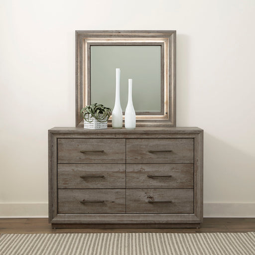 Liberty FurnitureCascade Falls - Dresser & Mirror - Satin EspressoProduct Features Soft Closing Side Mounted Drawer Guides (45mm) Mirror w/ One Inch Beveled Edg...