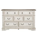 Blending of European traditional design influences makes Abbey Park a truly unique style for any living space. Warm antique finishes and artistic distressing along with grand scale makes Abbey Park a group to be passed to generations. The antique white finish with heavy chipping combines with the weathered brown white wash tops for a truly unique look. Bail and drop ring hardware in antique pewter add the finishing touch to the cases.