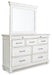 Give your retreat vintage charm and valuable drawer storage with this dresser and mirror set. In a beautifully distressed whitewash finish, you'll love putting it all away in casual style. Seven full-sized drawers and two accessory top drawers will easily accommodate your needs. Its beveled mirror brings magnificent height to this piece. Generously scaled moulding from top to bottom, along with bun feet and drawer handles with a transitional aesthetic, give this dresser and mirror character—evoking the feel of a quaint cottage escape.