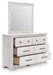 Details Includes dresser and mirror, Made with engineered wood (MDF/particleboard/plywood) and decorative laminate for the right balance of affordability and durability, Whitewash replicated worn through paint over replicated wood grain with authentic touch, Decorative laminate replicates natural or man-made material surfaces with consistent color, pattern and texture, Hardware with dark bronze-tone finish, 6 smooth-gliding drawers, Mirror attaches to back of dresser; can also be mounted on wall vertically, Safety is a top priority, clothing storage units are designed to meet the most current standard for stability, ASTM F 2057 (ASTM International), Drawers extend out to accommodate maximum access to drawer interior while maintaining safety, Minor assembly required