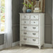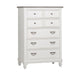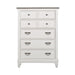 Enhance your room with the Allyson Park chest. Crafted with pine solids and veneers. This piece features felt lined top drawers, fully stained interior drawers, beautiful bead molding, and is anchored by tapered feet.
