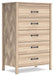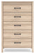 Details Made with engineered wood (MDF/particleboard/plywood) and decorative laminate for the right balance of affordability and durability, Two-tone finish (dry, light finish over replicated oak grain; light chevron pattern), Decorative laminate replicates natural or man-made material surfaces with consistent color, pattern and texture, Dark-colored hardware, 5 smooth-gliding drawers with ball-bearing side glides; vinyl-wrapped sides and back for durability, Safety is a top priority, clothing storage units are designed to meet the most current standard for stability, ASTM F 2057 (ASTM International), Drawers extend out to accommodate maximum access to drawer interior while maintaining safety, Assembly required