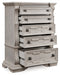 | Details | Made with hardwood solids, oak and ash swirl veneers, MDF substrates and cast resin components, Antiqued white finish, Hardware with antiqued bronze-tone finish, 5 smooth-gliding drawers with fully finished interiors, English dovetail construction and heavy-duty ball-bearing side glides (top drawer felt lined) | |