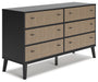 Put a retro spin on current trends with this dresser. Its mixed-material look of matte black and replicated beige cane brings a casually cool feel to your bedroom. Simple, sleek hardware and splay legs round out the urban meets mid-century vibe.