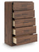 | Details | Made with MDF substrates and decorative paper laminate, Replicated walnut wood grain with high-low contrast for a rich brown wood tone, Hardware with black finish, 5 smooth-gliding drawers with English dovetail construction and center mount drawer guides, Drawer interiors lined with decorative wood grain paper laminate | |