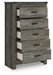 | Details | Made with engineered wood (MDF/particleboard/plywood) and decorative laminate for the right balance of affordability and durability, Rustic warm gray finish over replicated oak grain with authentic touch, Decorative laminate replicates natural or man-made material surfaces with consistent color, pattern and texture, Matte black drawer handles, 5 smooth-gliding drawers, Safety is a top priority, clothing storage units are designed to meet the most current standard for stability, ASTM F 2057 (ASTM International), Drawers extend out to accommodate maximum access to drawer interior while maintaining safety, Minor assembly required | |