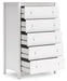| Details | Made with engineered wood (MDF/particleboard/plywood) and decorative laminate for the right balance of affordability and durability, Decorative laminate replicates natural or man-made material surfaces with consistent color, pattern and texture, Matte white finish, 5 smooth-gliding drawers with vinyl-wrapped sides and back for durability, Safety is a top priority, clothing storage units are designed to meet the most current standard for stability, ASTM F 2057 (ASTM International), Drawers extend out to accommodate maximum access to drawer interior while maintaining safety, Assembly required | |