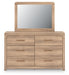 Kinlanni Queen Upholstered Panel Bed, Dresser and Mirror