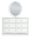 | Details | Includes dresser and mirror, Made with engineered wood (MDF/particleboard/plywood) and decorative laminate for the right balance of affordability and durability , Matte white finish, Decorative laminate replicates natural or man-made material surfaces with consistent color, pattern and texture , Crystal drawer knobs, 6 smooth-gliding drawers, Drawer interiors are lined with a faux linen laminate for a clean, finished look, Safety is a top priority, clothing storage units are designed to meet the most current standards for stability, ATM F 2057 (ASTM International), Drawers extend out to accommodate maximum access to drawer interior while maintaining safety, Mirror can be mounted on wall vertically , Minor assembly required | |